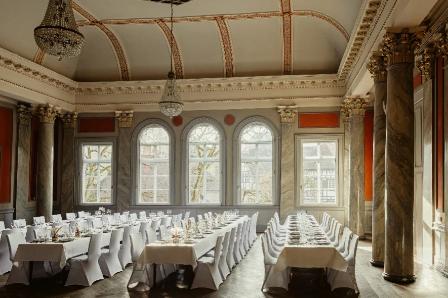 Die Beletage Tübingen zählt zu den schönsten Eventlocations im Zentrum von Tübingen. Unter prunkvollen Kronleuchtern und beeindruckenden 7 Meter hohen Decken entsteht ein einzigartiges Ambiente – perfekt für Hochzeiten, große Feiern und besondere Events mit bis zu 350 Gästen.